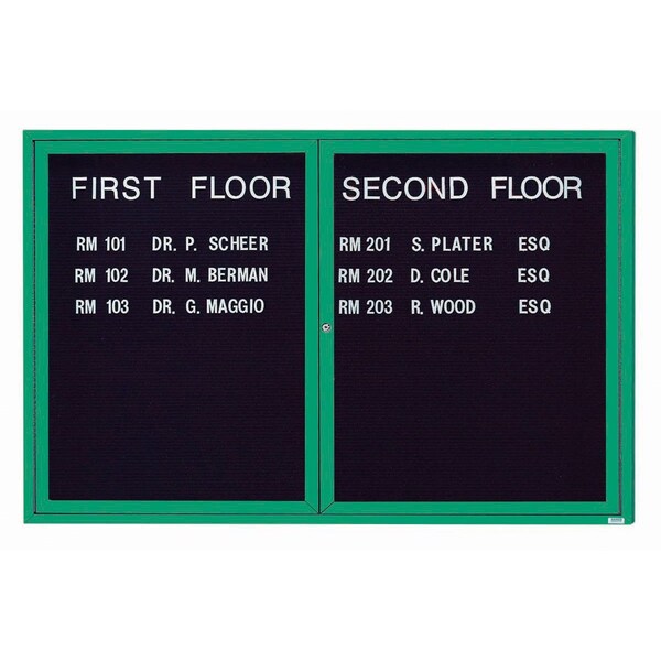 Enclosed Letter Board Directory w/ Powder Coated Green Aluminum Frame, 48''Hx72''W, 2 Doors
