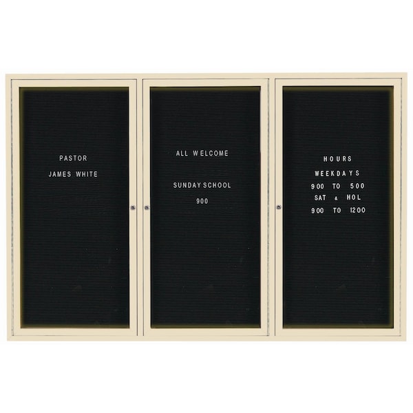 Enclosed Letter Board Directory w/ Powder Coated Ivory Aluminum Frame, 48''Hx72''W, 3 Doors