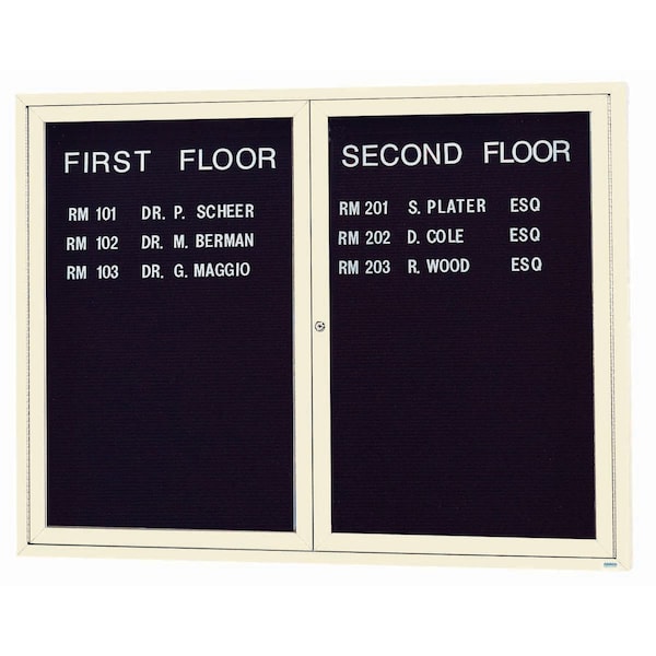 Enclosed Letter Board Directory w/ Powder Coated IvoryAluminum Frame, 48''Hx60''W, 2 Doors