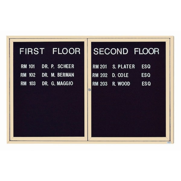 Enclosed Letter Board Directory w/ Powder Coated IvoryAluminum Frame, 48''Hx72''W, 2 Doors
