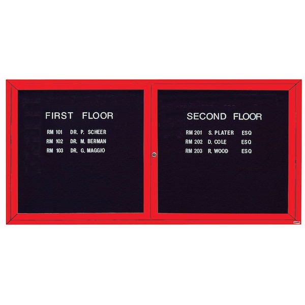 Enclosed Letter Board Directory w/ Powder Coated Red Aluminum Frame, 36''Hx72''W, 2 Doors