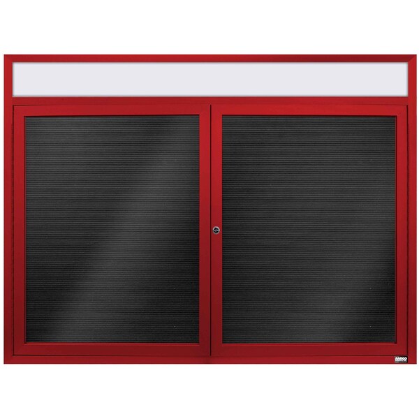 Enclosed Letter Board Directory w/ Powder Coated Red Aluminum Frame and Header, 36''Hx48''W, 2 Doors