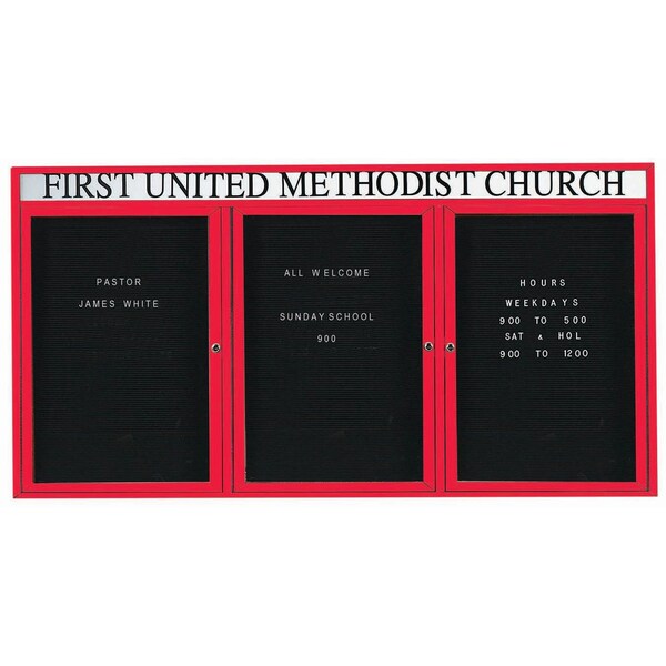 Enclosed Letter Board Directory w/ Powder Coated Red Aluminum Frame and Header, 48''Hx96''W, 3 Doors