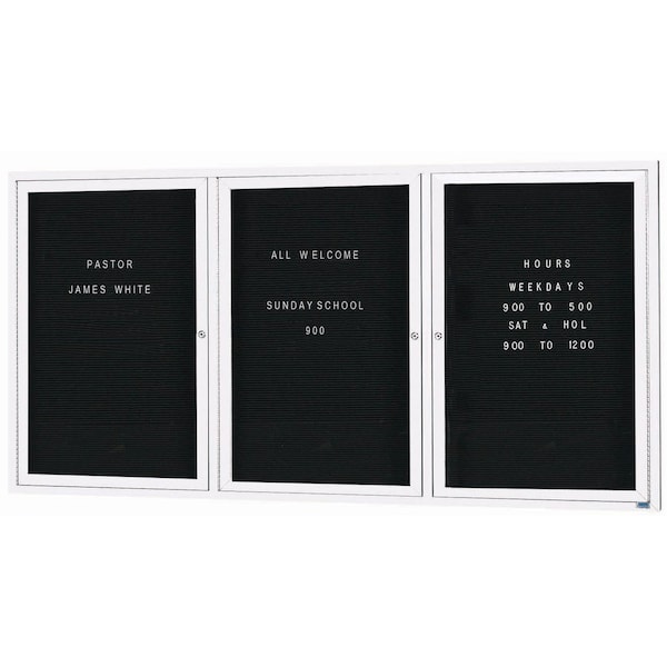 Enclosed Letter Board Directory w/ Powder Coated White Aluminum Frame, 48''Hx96''W, 3 Doors