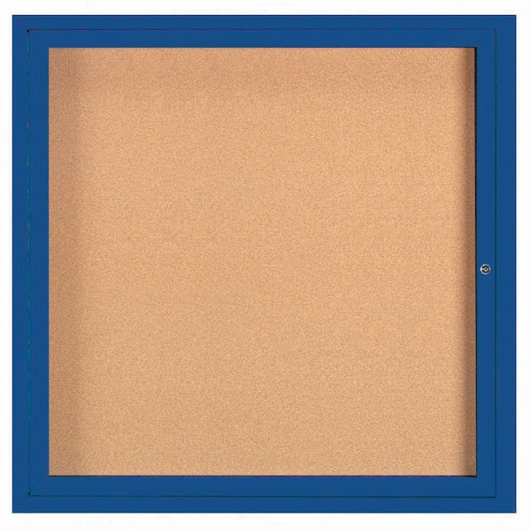 Enclosed Natural Pebble Grain Cork Bulletin Board w/ Blue Powder Coated Al Frame, 36''Hx36''W