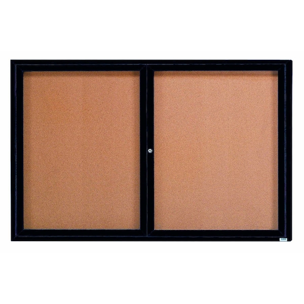 Enclosed Natural Pebble Grain Cork Bulletin Board w/ Bronze Anodized Al Frame, 48''Hx72''W Two Door