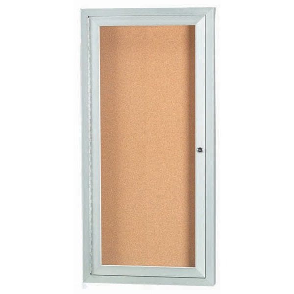 Enclosed Aluminum Bulletin Boards are made of custom extruded parts engineered to provide accurate, durable and handsome cabinets. All corners are neatly mitered and assembled with Heavy duty reinforcements and fasteners. Back panel is natural pebble grain cork. Finish Clear Satin Anodized Size 24"Hx12"W 1 Door