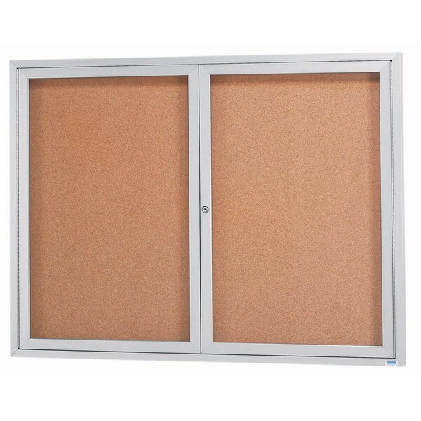 Enclosed Aluminum Bulletin Boards are made of custom extruded parts engineered to provide accurate, durable and handsome cabinets. All corners are neatly mitered and assembled with Heavy duty reinforcements and fasteners. Back panel is natural pebble grain cork. Finish Clear Satin Anodized Size 48"Hx60"W 2 Doors