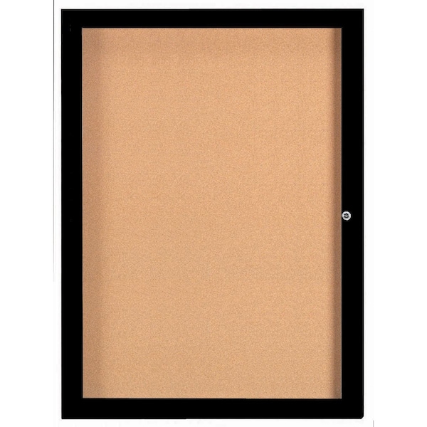 Enclosed Aluminum Bulletin Boards are made of custom extruded parts engineered to provide accurate, durable and handsome cabinets. All corners are neatly mitered and assembled with Heavy duty reinforcements and fasteners. Back panel is natural pebble grain cork. Supplied with a blank header panel, ready for your custom vinyl lettering. Lettering is not included and must be applied by the customer. Finish Bronze Satin Anodized Size 48"Hx36"W 1 Door