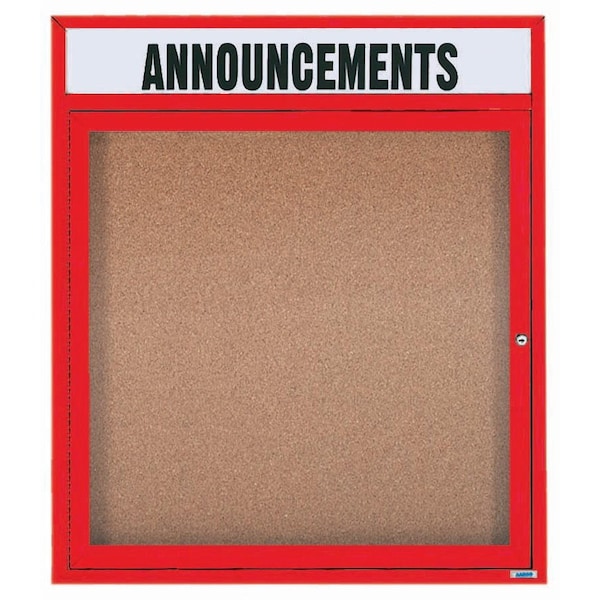 Enclosed Aluminum Bulletin Boards are made of custom extruded parts engineered to provide accurate, durable and handsome cabinets. All corners are neatly mitered and assembled with Heavy duty reinforcements and fasteners. Back panel is natural pebble grain cork. Supplied with a blank header panel, ready for your custom vinyl lettering. Lettering is not included and must be applied by the customer. Red Powder Coated Finish Size 36"Hx30"W 1 Door