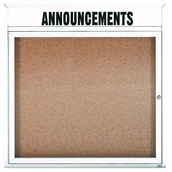 Enclosed Aluminum Bulletin Boards are made of custom extruded parts engineered to provide accurate, durable and handsome cabinets. All corners are neatly mitered and assembled with Heavy duty reinforcements and fasteners. Back panel is natural pebble grain cork. Supplied with a blank header panel, ready for your custom vinyl lettering. Lettering is not included and must be applied by the customer. White Powder Coated Finish Size 36"Hx36"W 1 Door