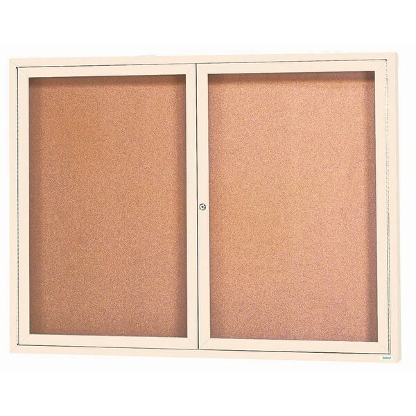 Enclosed Aluminum Bulletin Boards are made of custom extruded parts engineered to provide accurate, durable and handsome cabinets. All corners are neatly mitered and assembled with Heavy duty reinforcements and fasteners. Back panel is natural pebble grain cork. Ivory Powder Coated Finish Size 36"Hx48"W 2 Doors