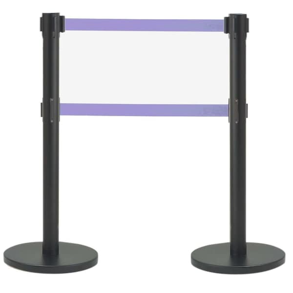 Form-A-Line Dual Retractable Belt Style Quality Crowd Control System is perfect for banks, motor vehicle agencies, cafeterias and all areas where organized queuing is required. This quality Crowd Control System uses dual retractable belts and is easy to assemble. Great in any area where organized queuing is required. The overall height is 40". The post attaches to a 30lb base, with protective floor guards, for stability. Color Black Finish With Dual 7' Retractable Purple Belts.