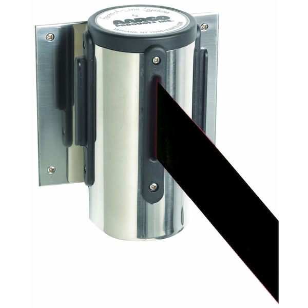 Form-A-Line System, Wall Mounted Retractable Belt w/ a Chrome Casing, 10' Black Belt