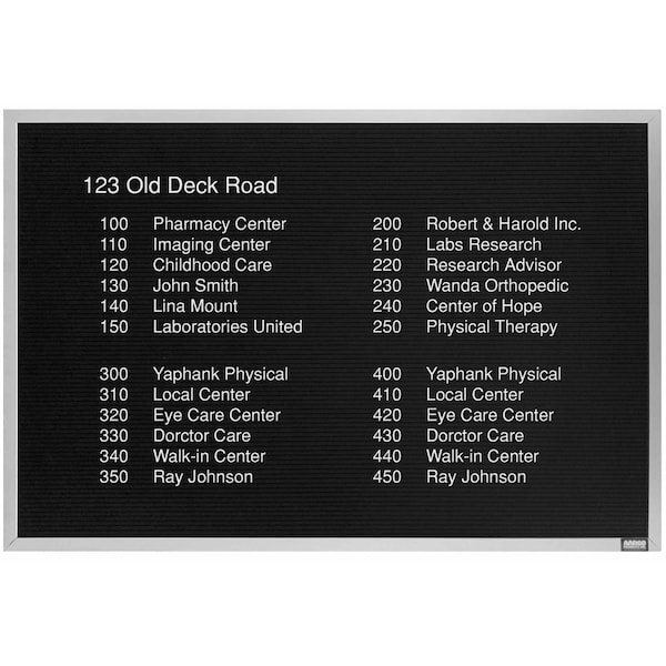 Framed Letter Board Message Center , Frame is Aluminum, Letter Board is Black Felt, 24''Hx36''W