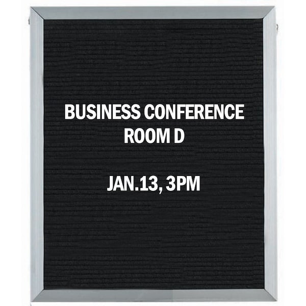 A classic black felt covered board that is precision grooved on 1/4" centers to accept universal quick change letters handsomely framed in Aluminum. Size 30"Hx24"W