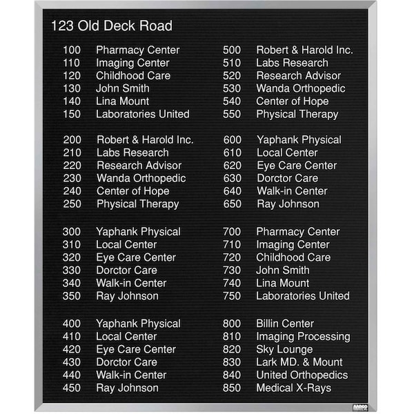 A classic black felt covered board that is precision grooved on 1/4" centers to accept universal quick change letters handsomely framed in Aluminum. Size 36"Hx30"W