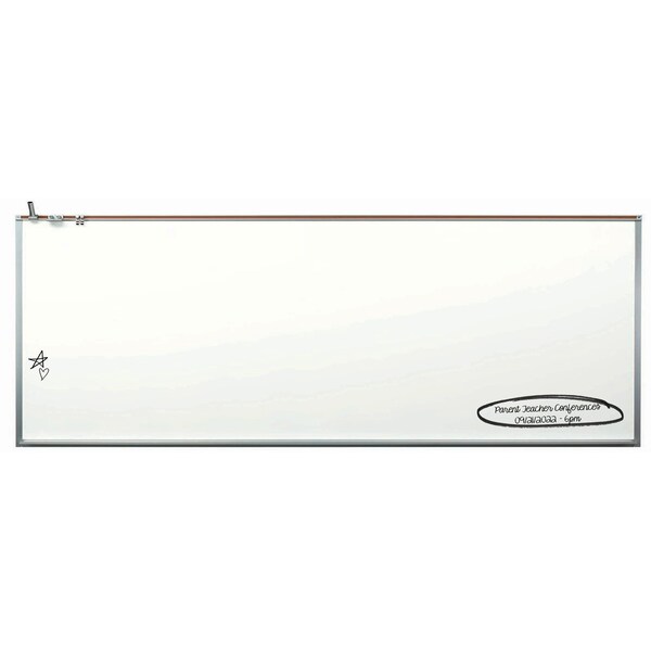 Glare-free White Porcelain Markerboard/Projection Screen with a Clear Satin Anodized Aluminum Frame and Full Length Map Rail. Size 48"Hx144"W