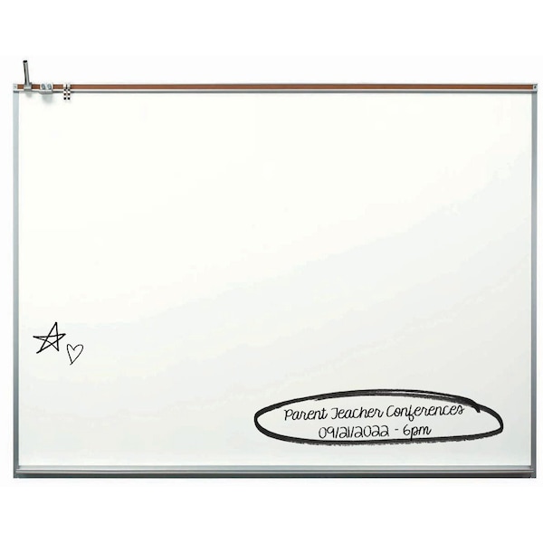 Glare-free White Porcelain Markerboard/Projection Screen with a Clear Satin Anodized Aluminum Frame and Full Length Map Rail. Size 48"Hx48"W