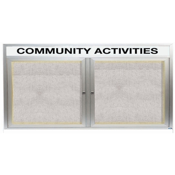 Illuminated Outdoor Enclosed Aluminum Bulletin Boards are made of custom extruded parts engineered to provide accurate, durable and handsome cabinets. All corners are neatly mitered and assembled with Heavy duty reinforcements and fasteners. Units are weatherized. Back panel is an attractive standard vinyl. Supplied with a blank header panel, ready for your custom vinyl lettering. Lettering is not included and must be applied by the customer. Finish Clear Satin Anodized Size 36"Hx72"W 2 Doors