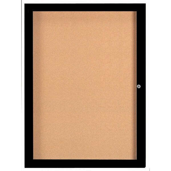 Illuminated Enclosed Aluminum Bulletin Boards are made of custom extruded parts engineered to provide accurate, durable and handsome cabinets. All corners are neatly mitered and assembled with Heavy duty reinforcements and fasteners. Back panel is natural pebble grain cork. Black Powder Coated Finish Size 48"Hx36"W 1 Door
