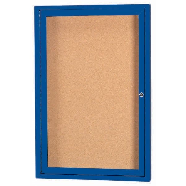 Illuminated Enclosed Aluminum Bulletin Boards are made of custom extruded parts engineered to provide accurate, durable and handsome cabinets. All corners are neatly mitered and assembled with Heavy duty reinforcements and fasteners. Back panel is natural pebble grain cork. Blue Powder Coated Finish Size 24"Hx18"W 1 Door