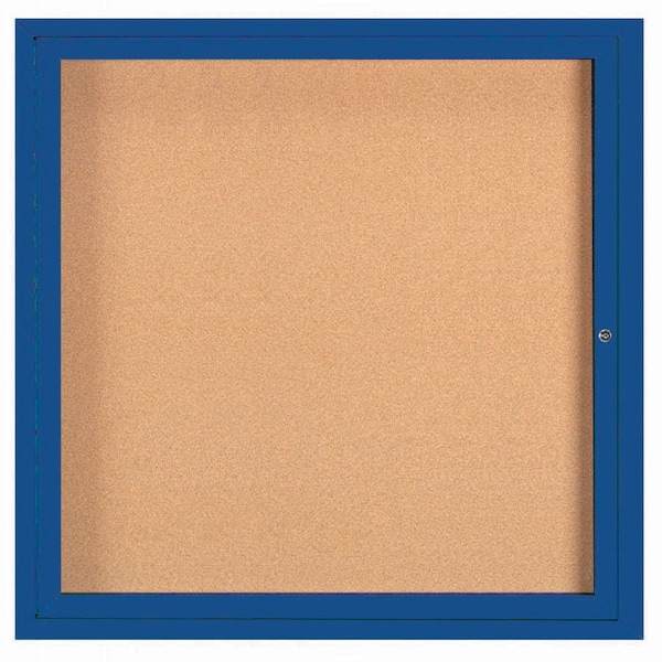 Illuminated Enclosed Aluminum Bulletin Boards are made of custom extruded parts engineered to provide accurate, durable and handsome cabinets. All corners are neatly mitered and assembled with Heavy duty reinforcements and fasteners. Back panel is natural pebble grain cork. Blue Powder Coated Finish Size 36"Hx36"W 1 Door