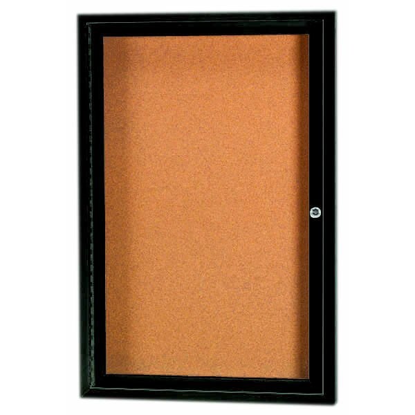 Illuminated Enclosed Aluminum Bulletin Boards are made of custom extruded parts engineered to provide accurate, durable and handsome cabinets. All corners are neatly mitered and assembled with Heavy duty reinforcements and fasteners. Back panel is natural pebble grain cork. Finish Bronze Satin Anodized Size 24"Hx18"W 1 Door
