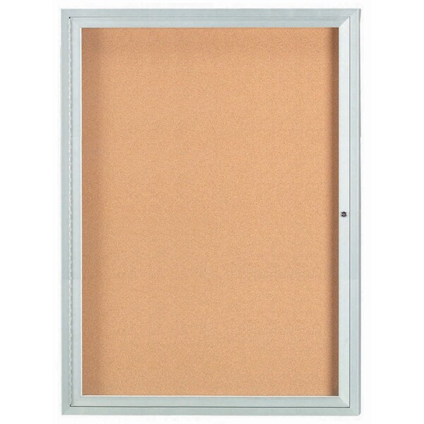 Illuminated Enclosed Aluminum Bulletin Boards are made of custom extruded parts engineered to provide accurate, durable and handsome cabinets. All corners are neatly mitered and assembled with Heavy duty reinforcements and fasteners. Back panel is natural pebble grain cork. Finish Clear Satin Anodized Size 48"Hx36"W 1 Door