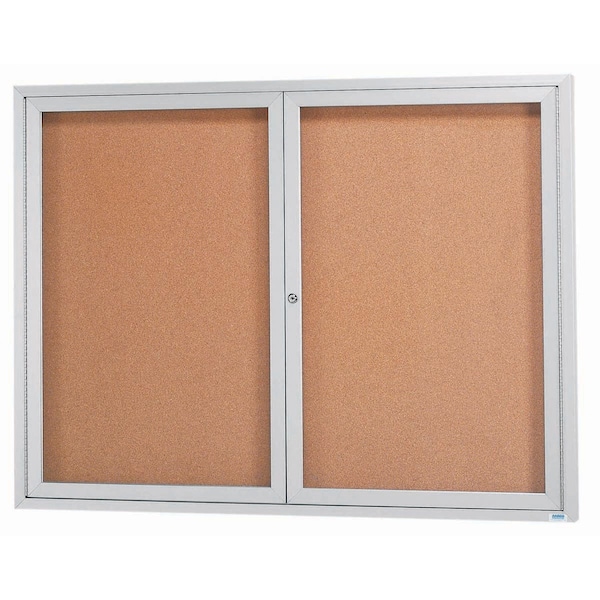 Illuminated Enclosed Aluminum Bulletin Boards are made of custom extruded parts engineered to provide accurate, durable and handsome cabinets. All corners are neatly mitered and assembled with Heavy duty reinforcements and fasteners. Back panel is natural pebble grain cork. Finish Clear Satin Anodized Size 48"Hx60"W 2 Doors