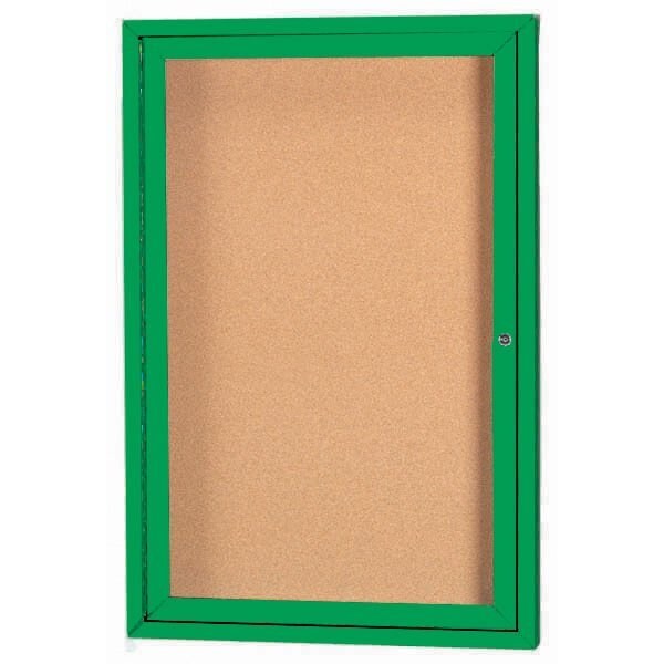 Illuminated Enclosed Aluminum Bulletin Boards are made of custom extruded parts engineered to provide accurate, durable and handsome cabinets. All corners are neatly mitered and assembled with Heavy duty reinforcements and fasteners. Back panel is natural pebble grain cork. Green Powder Coated Finish Size 24"Hx18"W 1 Door