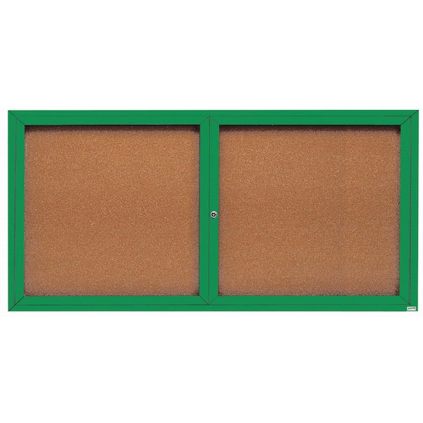 Illuminated Enclosed Aluminum Bulletin Boards are made of custom extruded parts engineered to provide accurate, durable and handsome cabinets. All corners are neatly mitered and assembled with Heavy duty reinforcements and fasteners. Back panel is natural pebble grain cork. Green Powder Coated Finish Size 36"Hx72"W 2 Doors