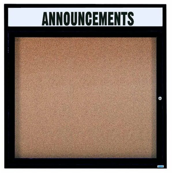 Illuminated Enclosed Aluminum Bulletin Boards are made of custom extruded parts engineered to provide accurate, durable and handsome cabinets. All corners are neatly mitered and assembled with Heavy duty reinforcements and fasteners. Back panel is natural pebble grain cork. Supplied with a blank header panel, ready for your custom vinyl lettering. Lettering is not included and must be applied by the customer. Black Powder Coated Finish Size 36"Hx36"W 1 Door