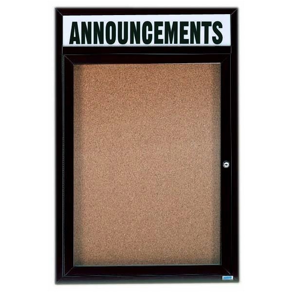 Illuminated Enclosed Bulletin Board w/ Header Bronze Anodized Al Frame, 24''Hx18''W