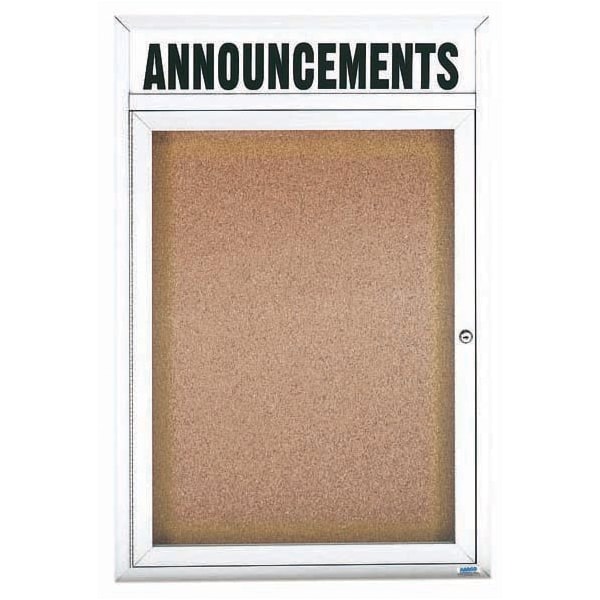 Illuminated Enclosed Aluminum Bulletin Boards are made of custom extruded parts engineered to provide accurate, durable and handsome cabinets. All corners are neatly mitered and assembled with Heavy duty reinforcements and fasteners. Back panel is natural pebble grain cork. Supplied with a blank header panel, ready for your custom vinyl lettering. Lettering is not included and must be applied by the customer. White Powder Coated Finish Size 24"Hx18"W 1 Door