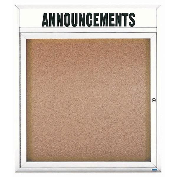 Illuminated Enclosed Aluminum Bulletin Boards are made of custom extruded parts engineered to provide accurate, durable and handsome cabinets. All corners are neatly mitered and assembled with Heavy duty reinforcements and fasteners. Back panel is natural pebble grain cork. Supplied with a blank header panel, ready for your custom vinyl lettering. Lettering is not included and must be applied by the customer. White Powder Coated Finish Size 36"Hx30"W 1 Door