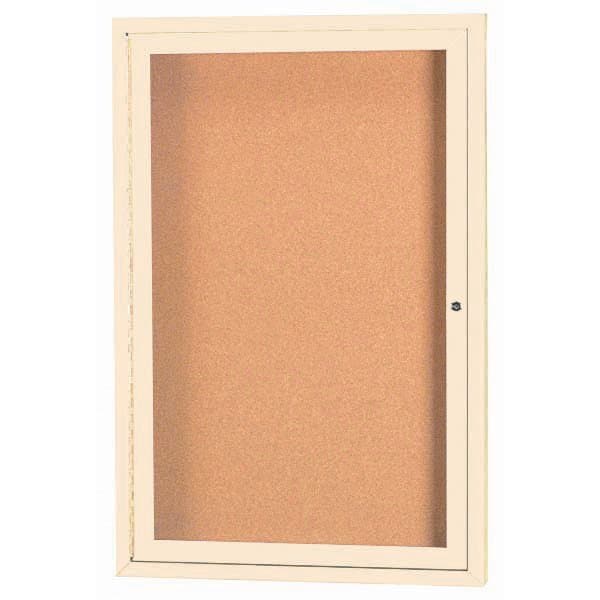 Illuminated Enclosed Aluminum Bulletin Boards are made of custom extruded parts engineered to provide accurate, durable and handsome cabinets. All corners are neatly mitered and assembled with Heavy duty reinforcements and fasteners. Back panel is natural pebble grain cork. Ivory Powder Coated Finish Size 24"Hx18"W 1 Door