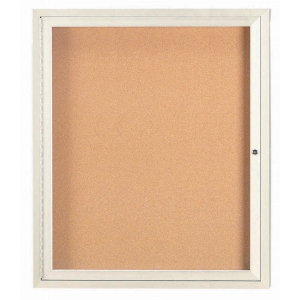 Illuminated Enclosed Aluminum Bulletin Boards are made of custom extruded parts engineered to provide accurate, durable and handsome cabinets. All corners are neatly mitered and assembled with Heavy duty reinforcements and fasteners. Back panel is natural pebble grain cork. Ivory Powder Coated Finish Size 36"Hx30"W 1 Door
