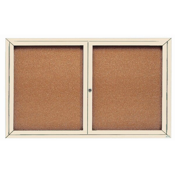 Illuminated Enclosed Aluminum Bulletin Boards are made of custom extruded parts engineered to provide accurate, durable and handsome cabinets. All corners are neatly mitered and assembled with Heavy duty reinforcements and fasteners. Back panel is natural pebble grain cork. Ivory Powder Coated Finish Size 36"Hx60"W 2 Doors