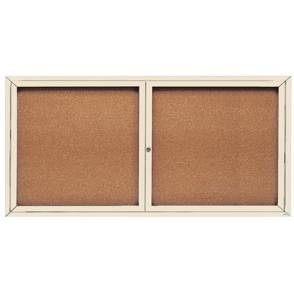 Illuminated Enclosed Aluminum Bulletin Boards are made of custom extruded parts engineered to provide accurate, durable and handsome cabinets. All corners are neatly mitered and assembled with Heavy duty reinforcements and fasteners. Back panel is natural pebble grain cork. Ivory Powder Coated Finish Size 36"Hx72"W 3 Doors