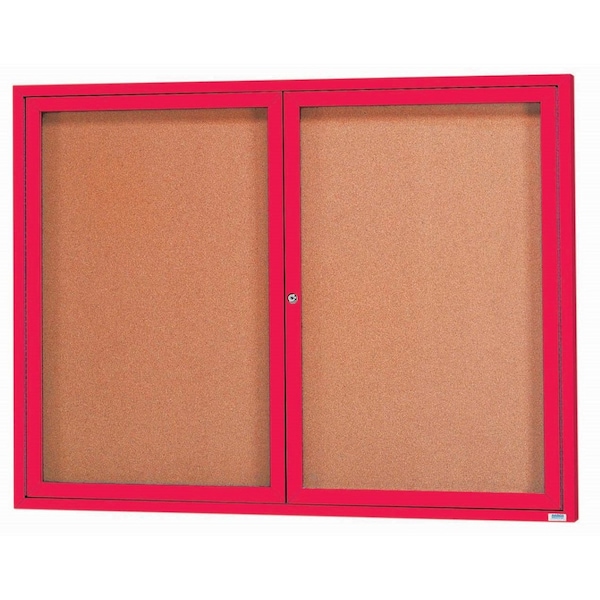 Illuminated Enclosed Aluminum Bulletin Boards are made of custom extruded parts engineered to provide accurate, durable and handsome cabinets. All corners are neatly mitered and assembled with Heavy duty reinforcements and fasteners. Back panel is natural pebble grain cork. Red Powder Coated Finish Size 48"Hx60"W 2 Doors
