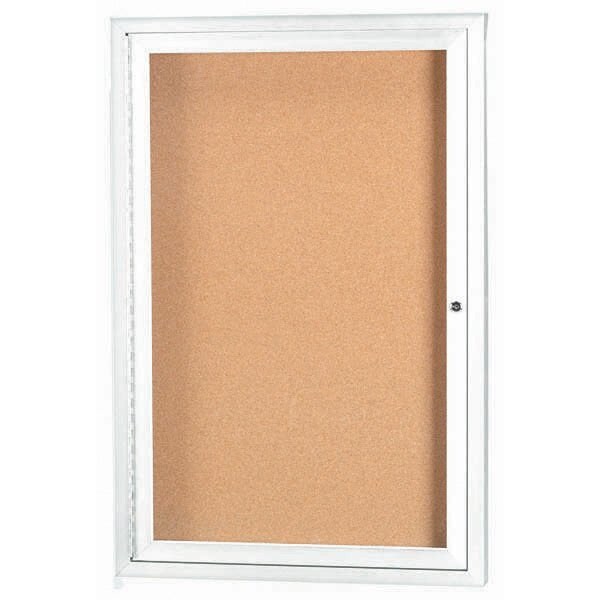 Illuminated Enclosed Aluminum Bulletin Boards are made of custom extruded parts engineered to provide accurate, durable and handsome cabinets. All corners are neatly mitered and assembled with Heavy duty reinforcements and fasteners. Back panel is natural pebble grain cork. White Powder Coated Finish Size 24"Hx18"W 1 Door