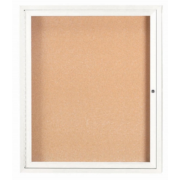 Illuminated Enclosed Aluminum Bulletin Boards are made of custom extruded parts engineered to provide accurate, durable and handsome cabinets. All corners are neatly mitered and assembled with Heavy duty reinforcements and fasteners. Back panel is natural pebble grain cork. White Powder Coated Finish Size 36"Hx30"W 1 Door