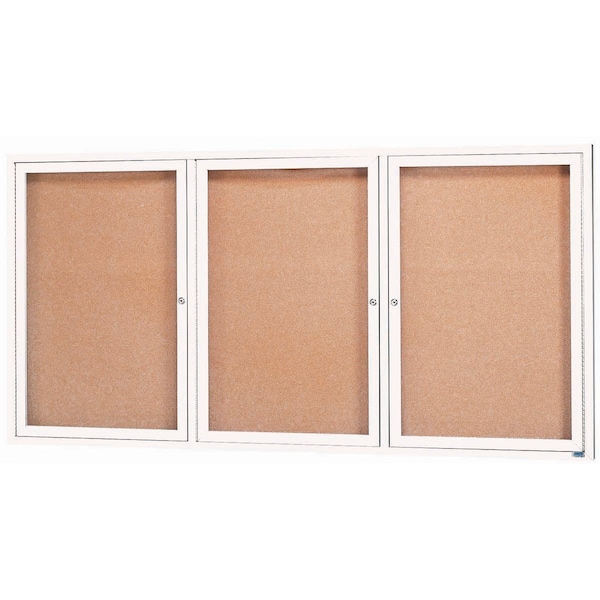 Illuminated Enclosed Aluminum Bulletin Boards are made of custom extruded parts engineered to provide accurate, durable and handsome cabinets. All corners are neatly mitered and assembled with Heavy duty reinforcements and fasteners. Back panel is natural pebble grain cork. White Powder Coated Finish Size 36"Hx72"W 3 Doors