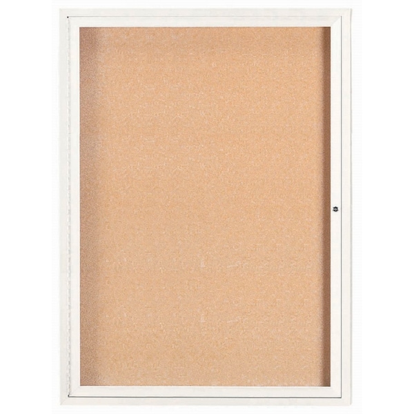 Illuminated Enclosed Aluminum Bulletin Boards are made of custom extruded parts engineered to provide accurate, durable and handsome cabinets. All corners are neatly mitered and assembled with Heavy duty reinforcements and fasteners. Back panel is natural pebble grain cork. White Powder Coated Finish Size 48"Hx36"W 1 Door