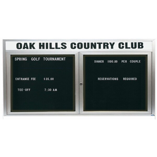 Illuminated Enclosed Aluminum Directory Boards are made of custom extruded parts engineered to provide accurate, durable and handsome cabinets. All corners are neatly mitered and assembled with Heavy duty reinforcements and fasteners. The black felt covered grooved rear panel designed to accommodate changeable letters with tabs spaced on 1/4" centers. Supplied with a blank header panel, ready for your custom vinyl lettering. Lettering is not included and must be applied by the customer. Finish Clear Satin Anodized Size 36"Hx72"W 2 Doors