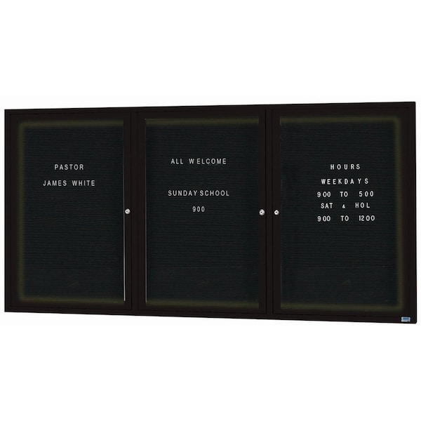 Illuminated Enclosed Letter Board Directory w/ Powder Coated Black Al Frame, 48''Hx96''W 3 Doors
