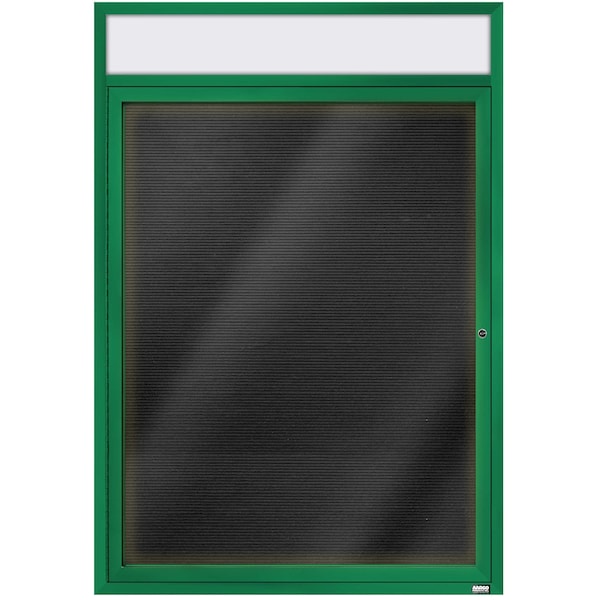 Illuminated Enclosed Aluminum Directory Boards are made of custom extruded parts engineered to provide accurate, durable and handsome cabinets. All corners are neatly mitered and assembled with Heavy duty reinforcements and fasteners. The black felt covered grooved rear panel designed to accommodate changeable letters with tabs spaced on 1/4" centers. Supplied with a blank header panel, ready for your custom vinyl lettering. Lettering is not included and must be applied by the customer. Green Powder Coated Finish Size 48"Hx36"W 1 Door