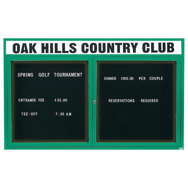 Illuminated Enclosed Letter Board Directory w/ Powder Coated Green Al Frame and Header, 48''Hx72''W