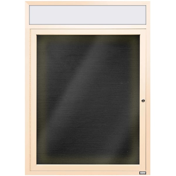 Illuminated Enclosed Aluminum Directory Boards are made of custom extruded parts engineered to provide accurate, durable and handsome cabinets. All corners are neatly mitered and assembled with Heavy duty reinforcements and fasteners. The black felt covered grooved rear panel designed to accommodate changeable letters with tabs spaced on 1/4" centers. Supplied with a blank header panel, ready for your custom vinyl lettering. Lettering is not included and must be applied by the customer. Ivory Powder Coated Finish Size 36"Hx30"W 1 Door